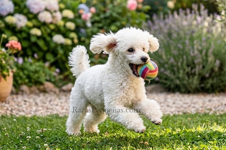 No te dejes engañar por su tamaño. El Caniche Toy acumula mucha energía y necesita liberarla cada día. Lo mínimo recomendable son tres paseos diarios de media hora, además de juegos e interacción en casa. Un Caniche Toy con energía acumulada puede volverse nervioso, ansioso o desarrollar comportamientos destructivos que no tienen nada que ver con su carácter real.