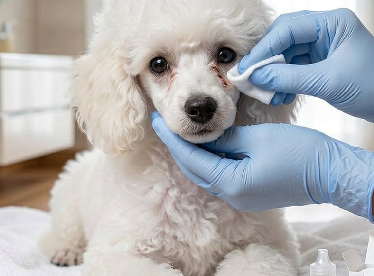 Específico para Caniches blancos o gris plata. Elimina las manchas de oxidación del pelo periocular, manteniendo el contorno de ojos limpio y sin amarillear.